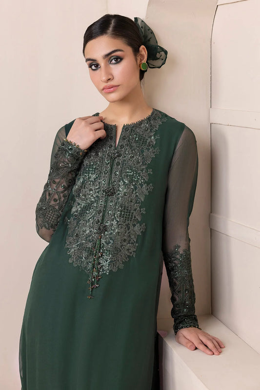 Baroque EMBROIDERED CHIFFON-Dark Green-Chiffon