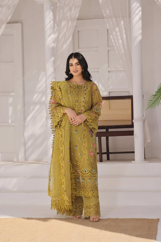 Yellow- Party wear organza stitched 4 piece